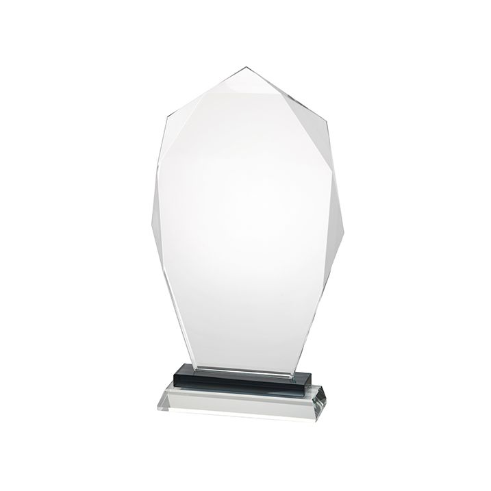 This 7-sided glass trophy with blue base is available in 3 different sizes. The glass award comes with free gift box so it can be given to the recipient right away. The award can be fully personalised with an image, logo and/or text. Within 24 hours of receiving the order confirmation, you will receive a proof from Budgettrophy. After approval, the order goes into production.