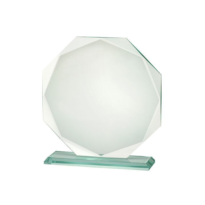 This octagonal glass award is available in 3 different sizes. The glass award can be personalised with a image, logo and/or text. The design will be lasered into the glass. When you place the order, you will receive a proof of the glass award within 24 hours. Once approval is received, we will proceed to production.