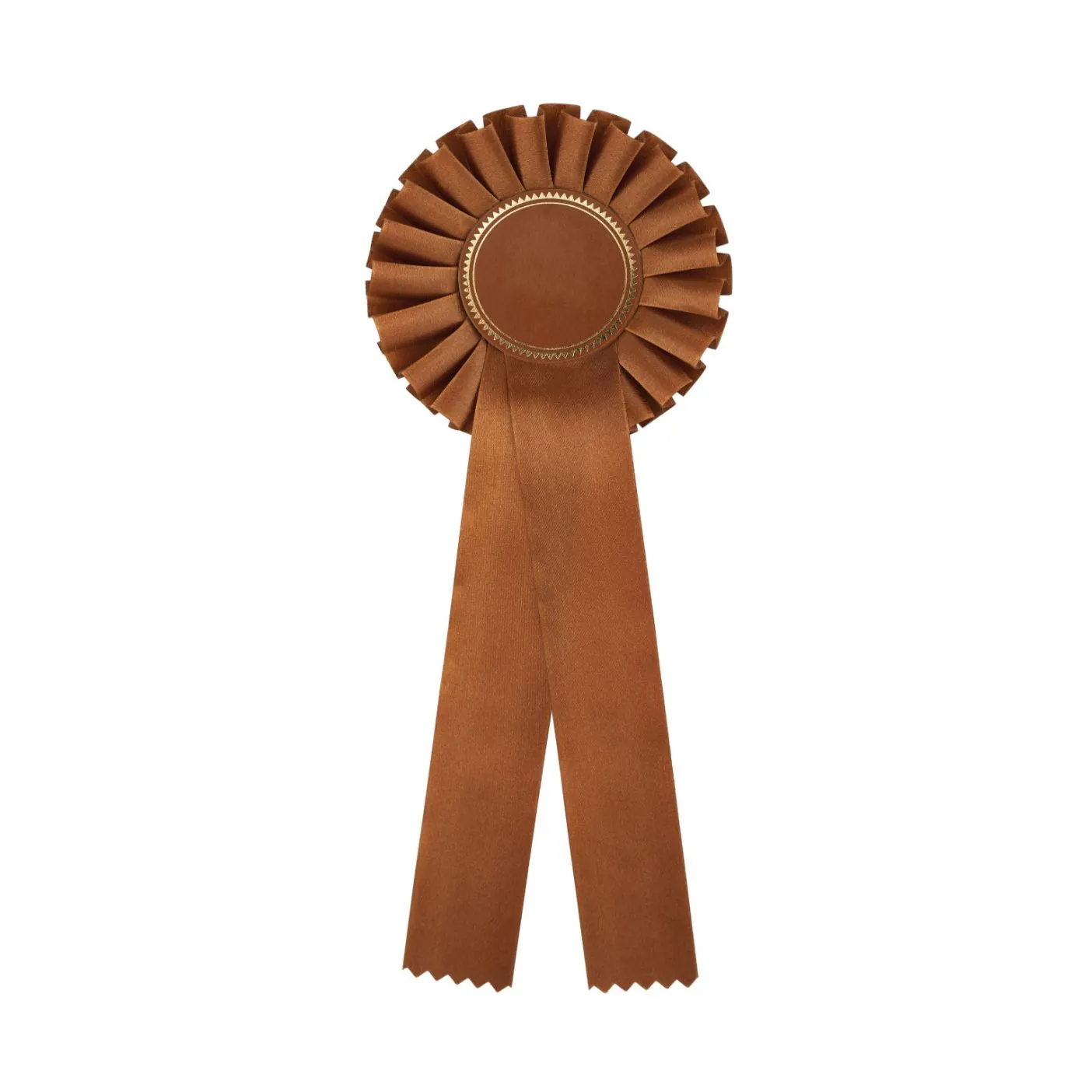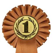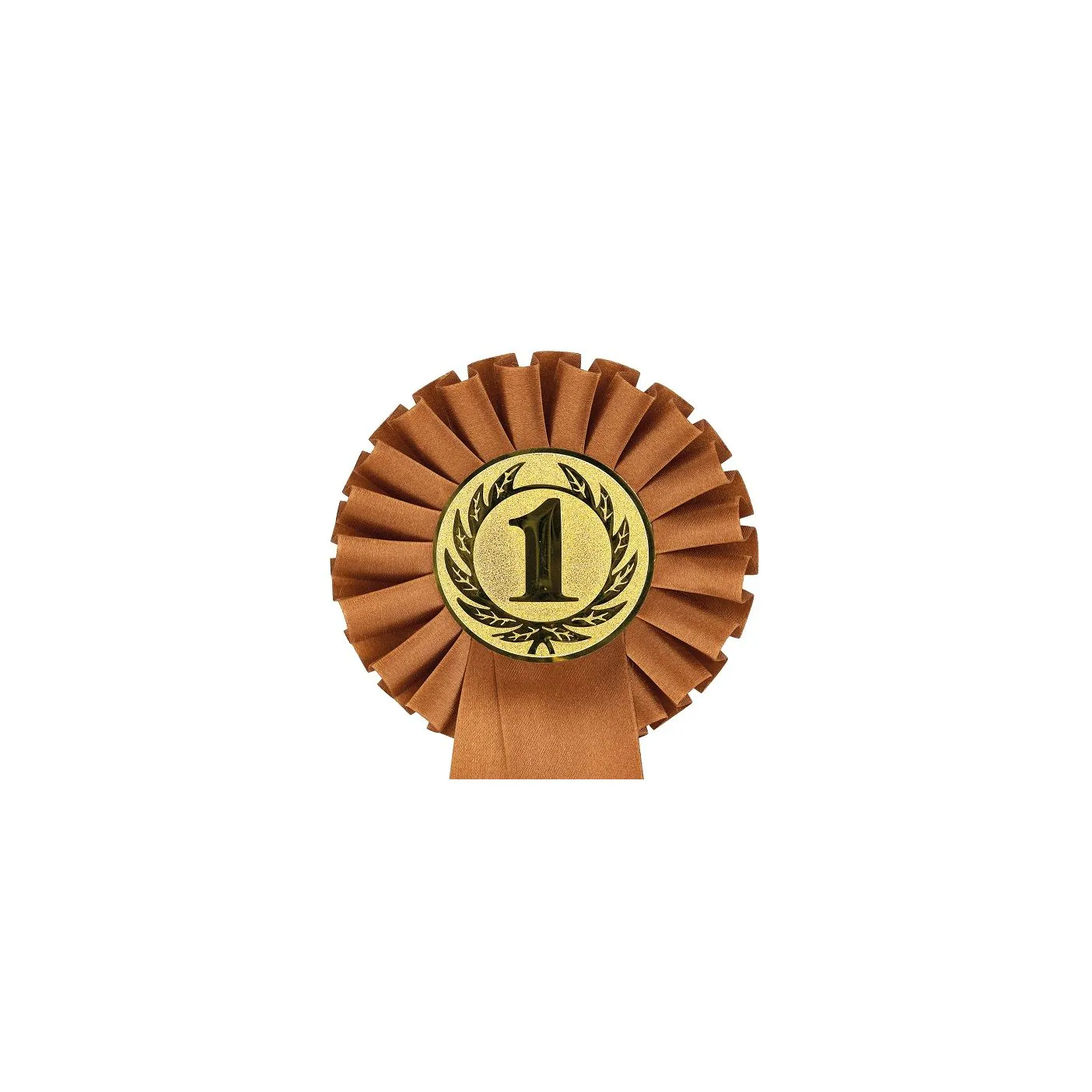 You can make this neutral brown rosette all your own thanks to the personalisation options. Tailor the rosette to your tournament, match or event by having an image placed in the centre. Upload your own logo, photo or design or choose a free (sports) image from the wide range of Budgettrophy. Simply pin the rosette with the pin on the back.