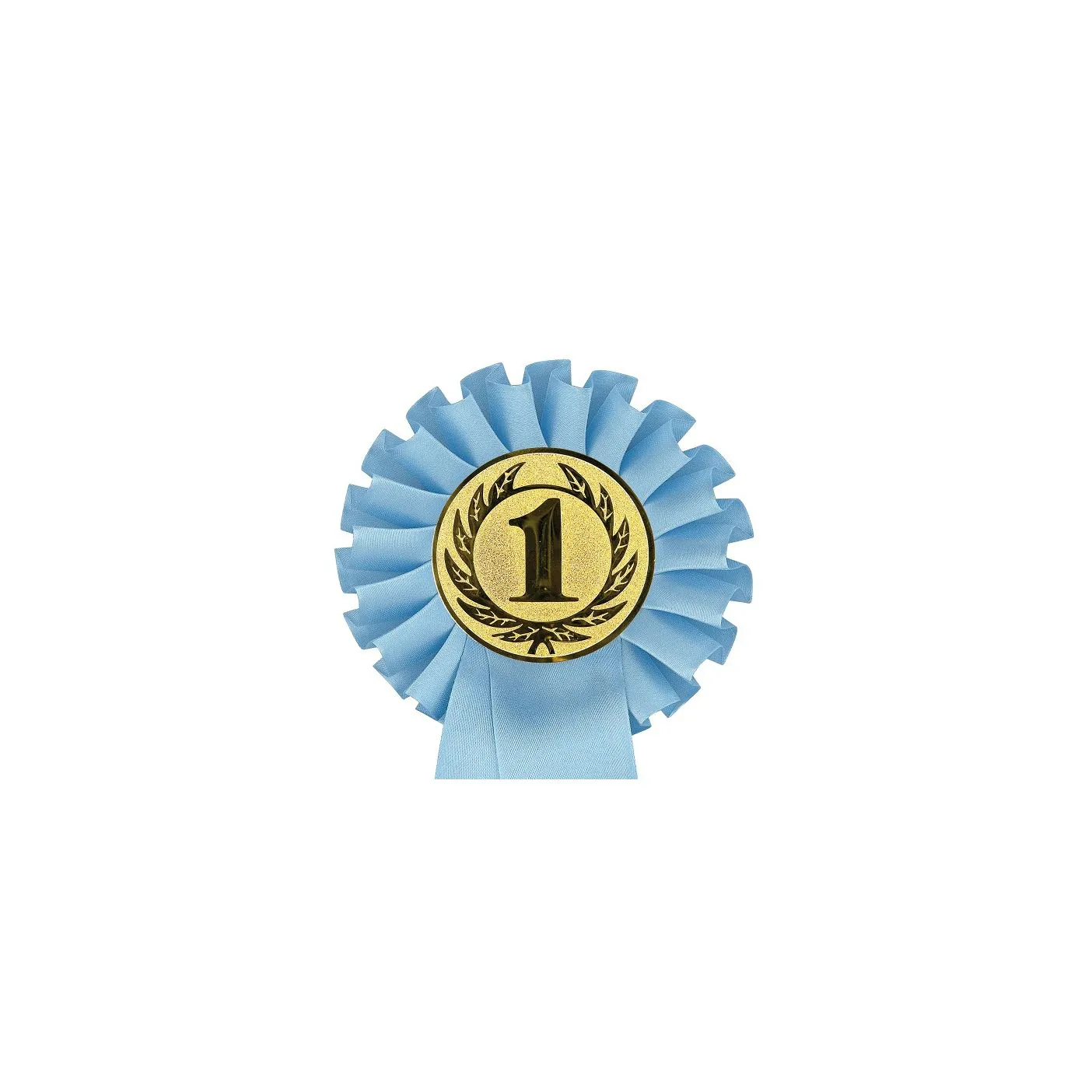 This light blue rosette has a blank centre and can be personalised for any tournament, competition or event. Tailor the rosette to your sport or activity by having an image placed in the centre. Upload your own logo, photo or design or choose a free (sports) image from the wide range of Budgettrophy. Simply pin the rosette on the winner's chest with the pin on the back.