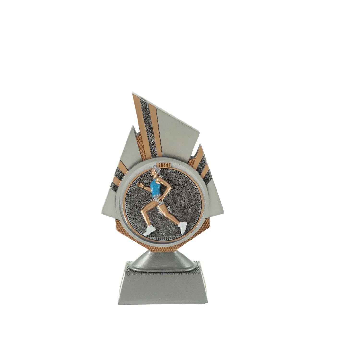 Budgettrophy stocks this trophy in 3 sizes. It is a beautiful resin holder, in which a running disc is attached. At the bottom of the trophy there is room for a text plate where you can have your own text put on it. The assembly of this trophy is carried out free of charge by Budgettrophy.