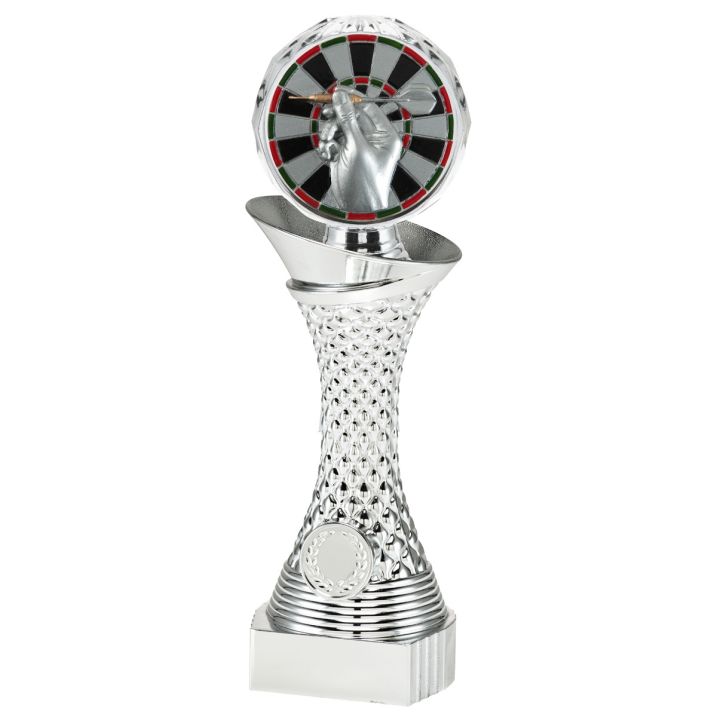 This silver trophy is available in 3 sizes at Budgettrophy. There is a beautiful darts disc on the top of the trophy, and at the bottom there is space for your own image as well as a text plate! For the image, you can upload your own design. Or choose one of our images. Budgettrophy mounts the trophy free of charge for you.