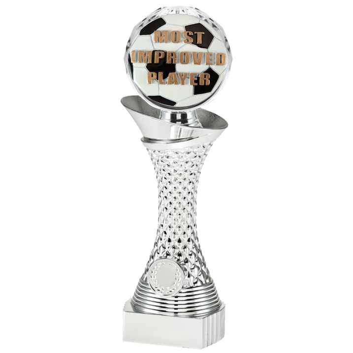 This silver trophy is available in 3 sizes at Budgettrophy. There is a beautiful football disc on the top of the trophy, and at the bottom there is space for your own image as well as a text plate! For the image, you can upload your own design. Or choose one of our images. Budgettrophy mounts the trophy free of charge for you.