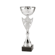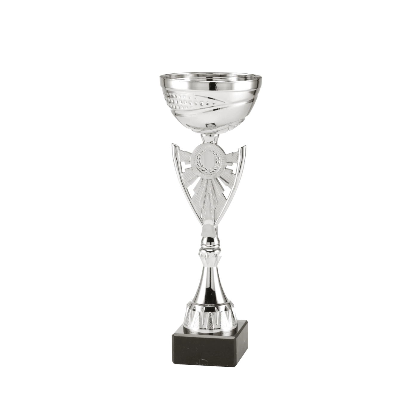 This silver trophy is suitable for any event. It is available in 6 sizes, so there is always a suitable size for you! An image can be placed on the central part. You can supply your own image for this, or choose one from our catalogue. A text plate can be attached to the black base. You can supply your own text for this. The assembly is done for free by Budgettrophy!