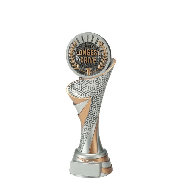 Linjakas mattahopeinen longest drive golfpalkinto Jason on saatavana kolmessa eri koossa. Kullanväriset yksityiskohdat antavat palkinnolle tyylikkään ja modernin ilmeen. Palkinnon yläosan teksti kertoo näyttävästi, mistä palkinto on ansaittu. Kullanvärinen tekstilaatta toivomallasi tekstillä viimeistelee palkinnon!