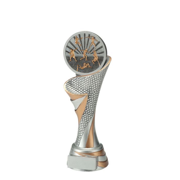 Linjakas mattahopeinen yleisurheilupalkinto Jason on saatavana kolmessa eri koossa. Kullanväriset yksityiskohdat antavat palkinnolle tyylikkään ja modernin ilmeen. Palkinnon yläosaa koristaa vauhdikas yleisurheiluaiheinen kuva. Kullanvärinen tekstilaatta toivomallasi tekstillä viimeistelee palkinnon!
