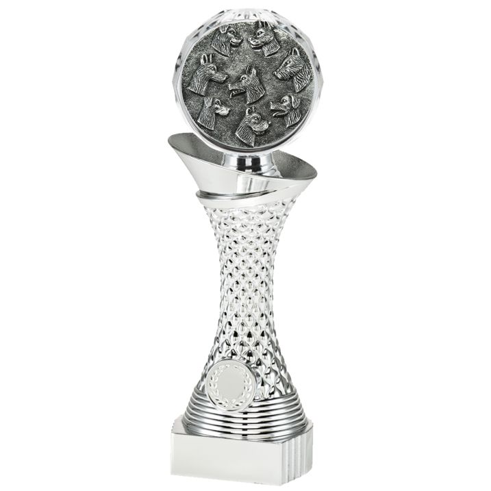 Tyylikäs hopeanvärinen koiraurheilupalkinto Lieke on saatavana kolmessa eri koossa. Palkinnon yläosaa koristaa komea koira-aiheinen kuva, palkinnon alaosaan voidaan lisäksi liittää lajitunnus tai oma kuva-aiheesi. Hopeanvärinen tekstilaatta toivomallasi tekstillä viimeistelee palkinnon!