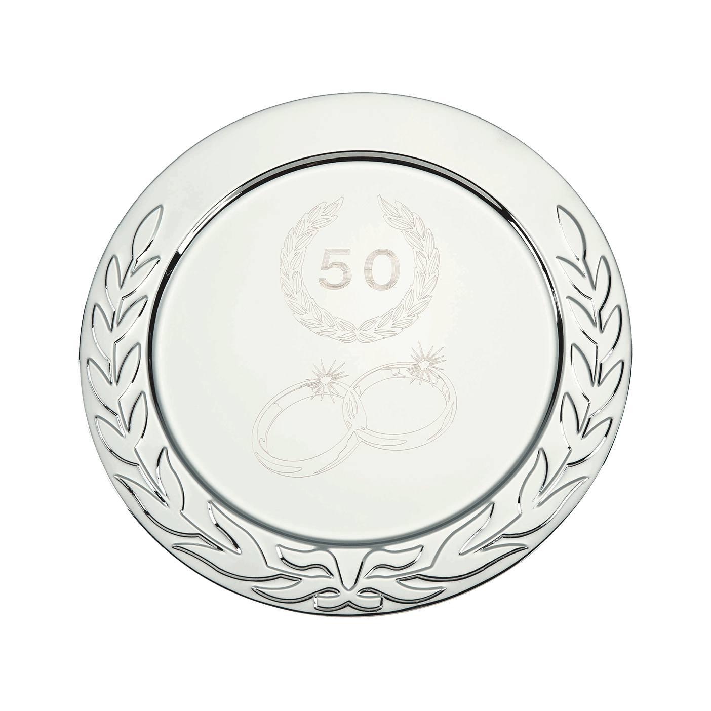Cette assiette en métal avec une guirlande a Budgettrophy disponible en 5 tailles différentes. L’assiette peut être gravée selon vos souhaits, par exemple avec votre propre logo, image ou texte. Vous pouvez également télécharger votre image. Budgettrophy vous contactera ensuite pour approuver le produit final. Attention : pour les verres/coupes de championnat, veuillez compter 1 jour ouvrable supplémentaire pour l'expédition.