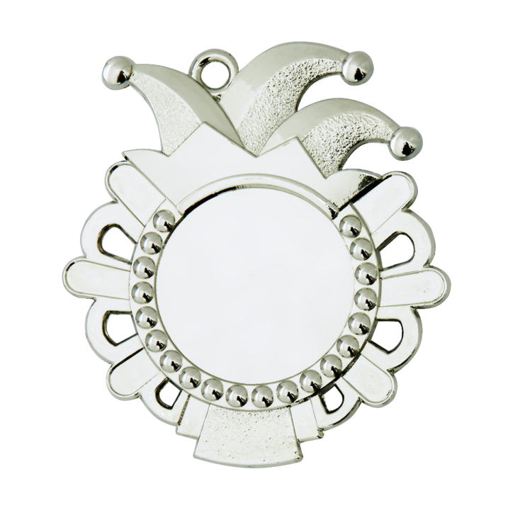 Cette médaille de carnaval argentée est idéale pour offrir en tant que souvenir à tous les participants. Une illustration peut être placée côté face. Vous pouvez pour cela sélectionner une illustration dans notre catalogue ou télécharger vous-même une illustration. Un texte peut également être apposé au dos de la médaille. Il suffit ensuite de sélectionner le ruban de votre choix et c’est tout !