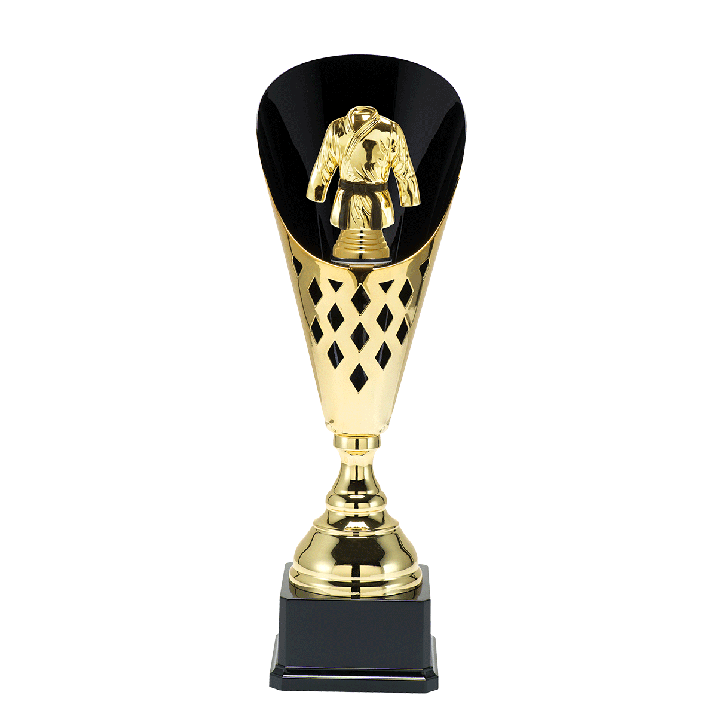 Cette coupe grande est disponible en stock chez Budgettrophy, en 3 tailles différentes, allant de 40cm à 50,5cm.Cette coupe convient très bien à tous les événements ou tournois de judo. Vous pouvez ajouter une plaque gravée avec votre propre texte sur le pied de la coupe. Le montage de la plaque gravée est effectué par Budgettrophy pour vous gratuitement !