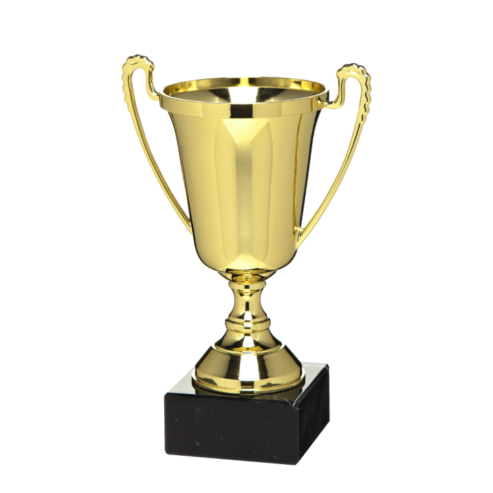 Ce trophée doré est super pour ceux qui ne disposent que d’un petit budget mais souhaitent tout de même remettre une belle coupe. Il est pourvu de deux oreilles sur les côtés qui permettent également de le saisir. Une plaque gravée avec un texte personnalisé peut être fixée sur le socle en marbre noir.