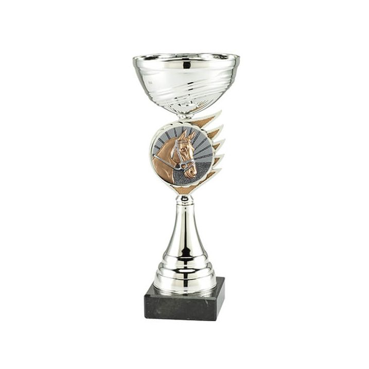 Ce trophée prestige est disponible chez Budgettrophy en 3 tailles différentes en stock. Le trophée est argenté et monté dessus est un disque équitation. En bas du trophée il y a de la place pour une plaque gravée de votre propre texte. Budgettrophy vous offre le montage de la plaque gravée gratuitement!