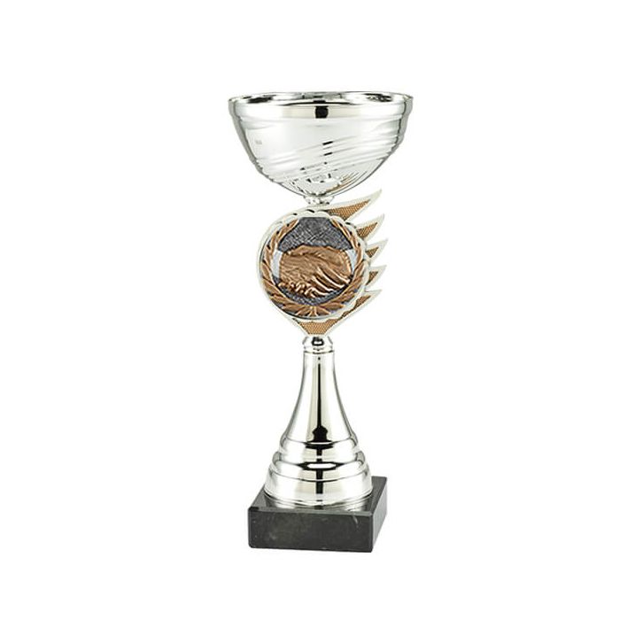 Ce trophée prestige est disponible chez Budgettrophy en 3 tailles différentes en stock. Le trophée est argenté et monté dessus est un disque mains serrées. En bas du trophée il y a de la place pour une plaque gravée de votre propre texte. Budgettrophy vous offre le montage de la plaque gravée gratuitement!