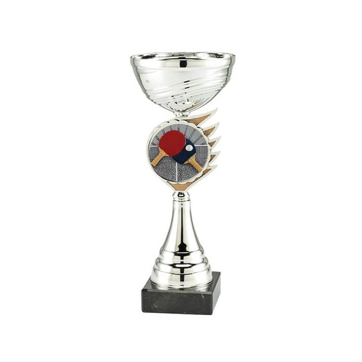 Ce trophée prestige est disponible chez Budgettrophy en 3 tailles différentes en stock. Le trophée est argenté et monté dessus est un disque tennis de table. En bas du trophée il y a de la place pour une plaque gravée de votre propre texte. Budgettrophy vous offre le montage de la plaque gravée gratuitement!