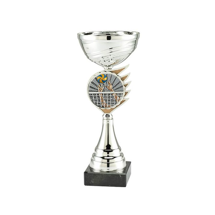 Ce trophée prestige est disponible chez Budgettrophy en 3 tailles différentes en stock. Le trophée est argenté et monté dessus est un disque volleyball. En bas du trophée il y a de la place pour une plaque gravée de votre propre texte. Budgettrophy vous offre le montage de la plaque gravée gratuitement!