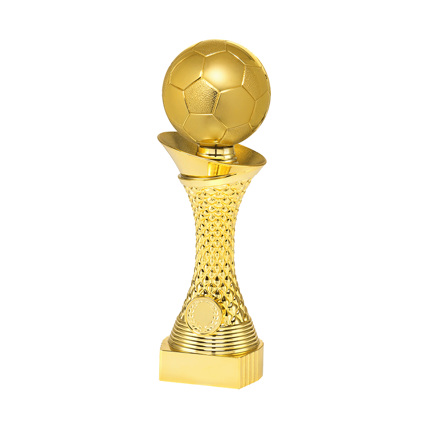 Deze gouden voetbal standaard heeft Budgettrophy in 3 verschillende maten op voorraad. De standaard is geheel goud met een grote gouden voetbal erop. Onderaan de standaard is een rondje waar een afbeelding geplaatst kan worden. Op de voet van het blok kunt u daarnaast een graveerplaatje met uw eigen tekst laten toevoegen. Budgettrophy voert de montage van de afbeelding en het graveerplaatje gratis voor u uit!