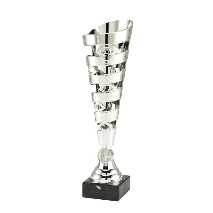 Ce beau trophée argenté est disponible en trois tailles différentes. Le trophée possède des détails ajourés, ce qui lui donne un rayonnement luxueux. De style classique, il convient à tous les événements. Ajoutez-y une plaquette portant un texte personnel afin de lui donner une dimension personnelle supplémentaire. Celle-ci sera apposée par Budgettrophy.