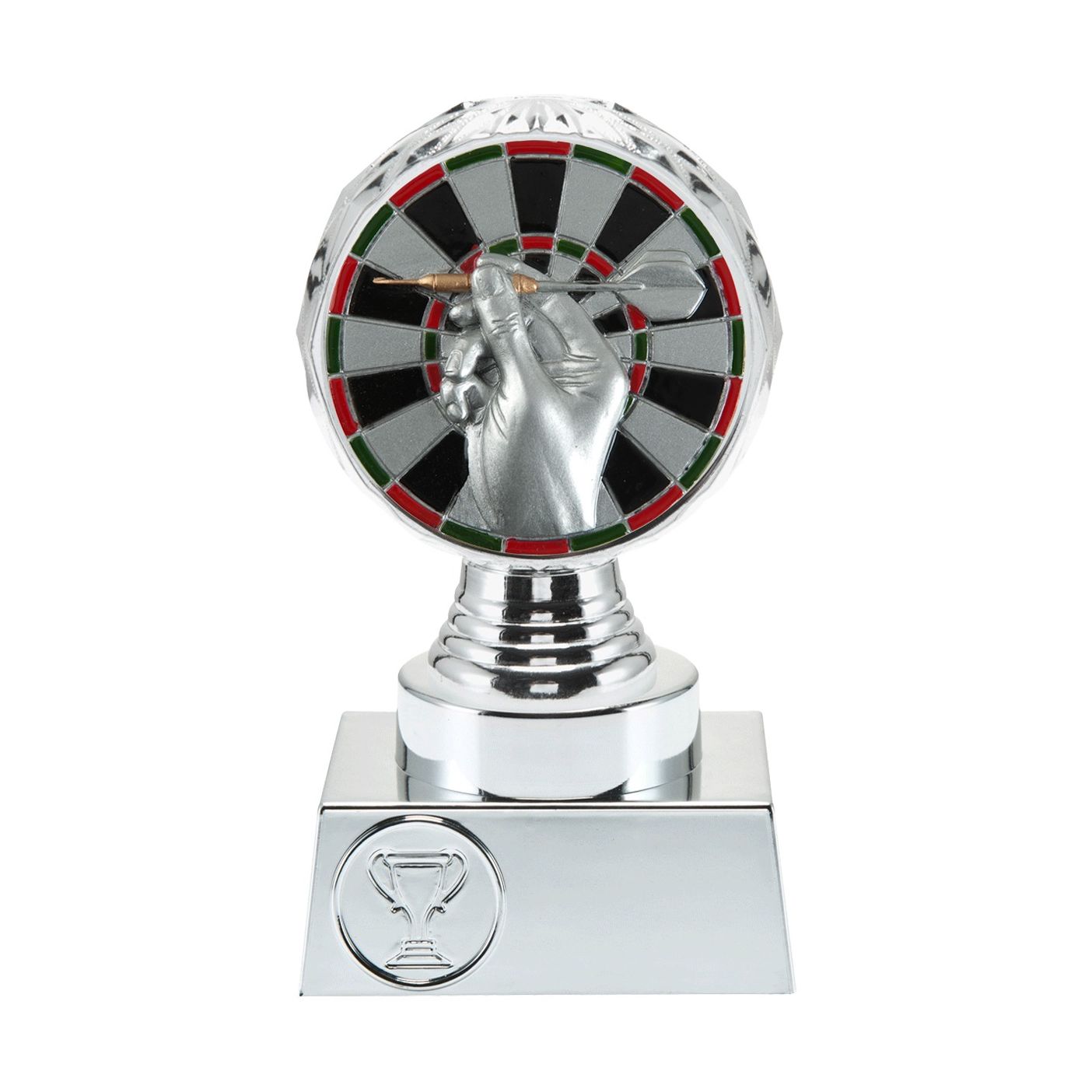 Ce trophée est disponible chez Budgettrophy en 3 tailles différentes en stock. Le trophée est argenté de couleur et monté dessus est un disque fléchettes. En bas du trophée il y a de la place pour une image (sportive) et une plaque gravée de votre propre texte. Budgettrophy vous offre le montage de l’image (sportive) et de la plaque gravée gratuitement!