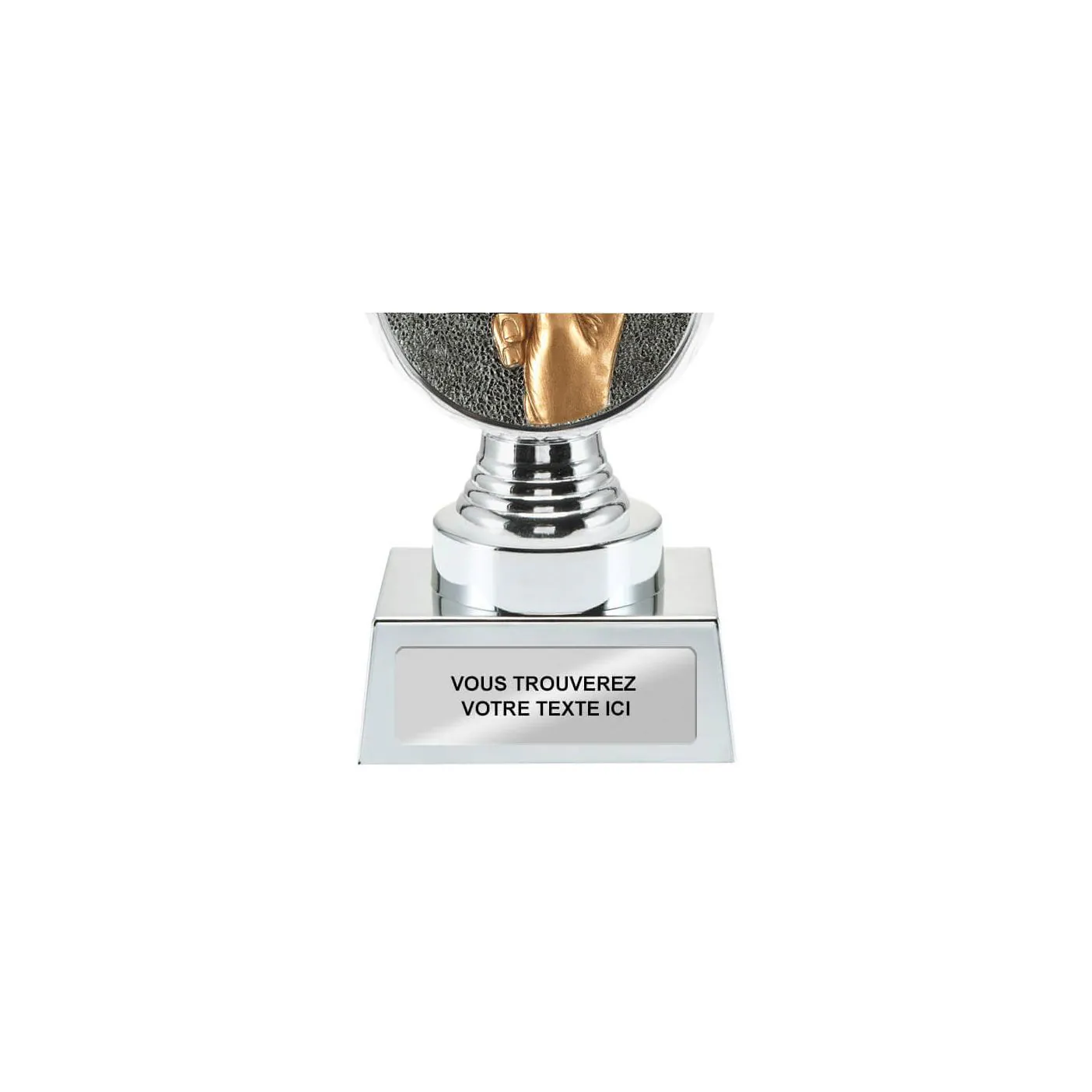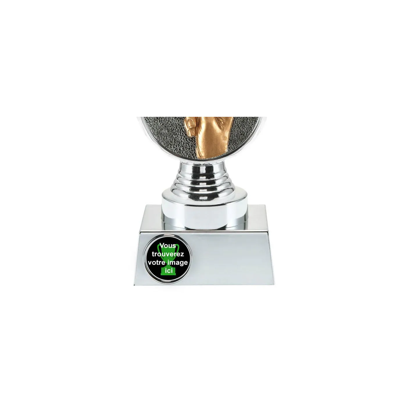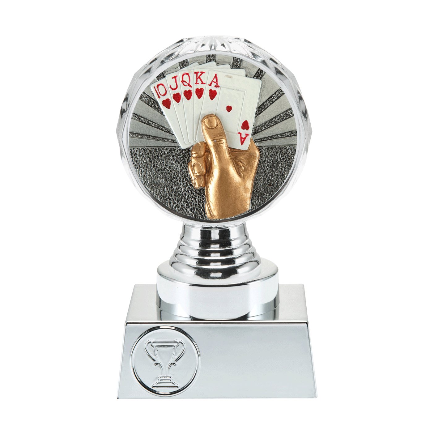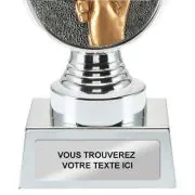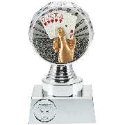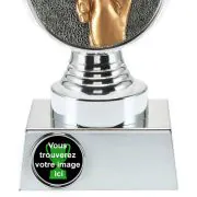 Ce trophée est disponible chez Budgettrophy en 3 tailles différentes en stock. Le trophée est argenté de couleur et monté dessus est un disque jeux de cartes. En bas du trophée il y a de la place pour une image (sportive) et une plaque gravée de votre propre texte. Budgettrophy vous offre le montage de l’image (sportive) et de la plaque gravée gratuitement!