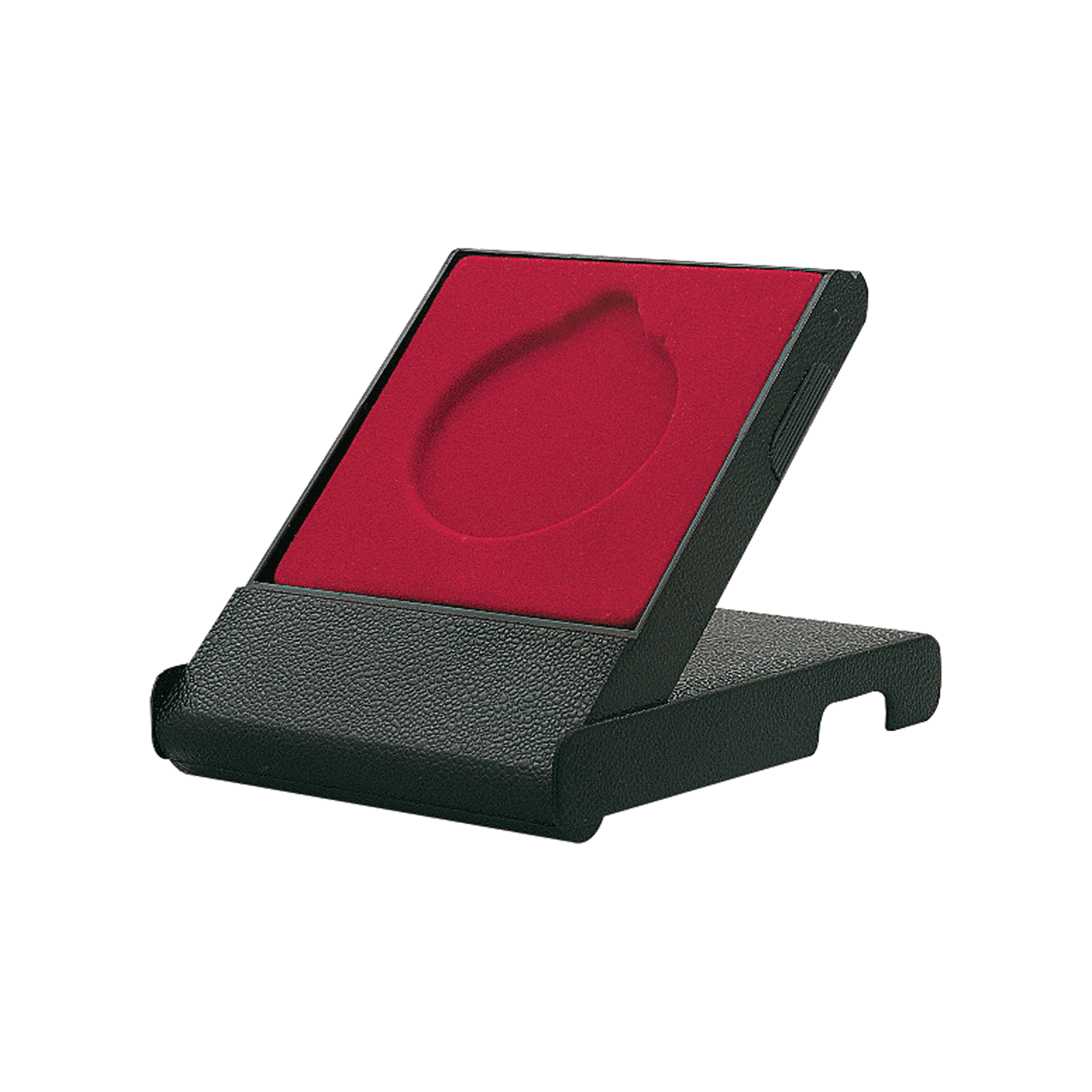 Cet écrin pour médailles a une doublure en velours rouge et est disponible en stock chez Budgettrophy . L'écrin est prévu pour des médailles de diamètre de 50 mm. Vous pouvez placer la médaille dans la boîte et présenter la boîte à la fois fermée ou ouverte.