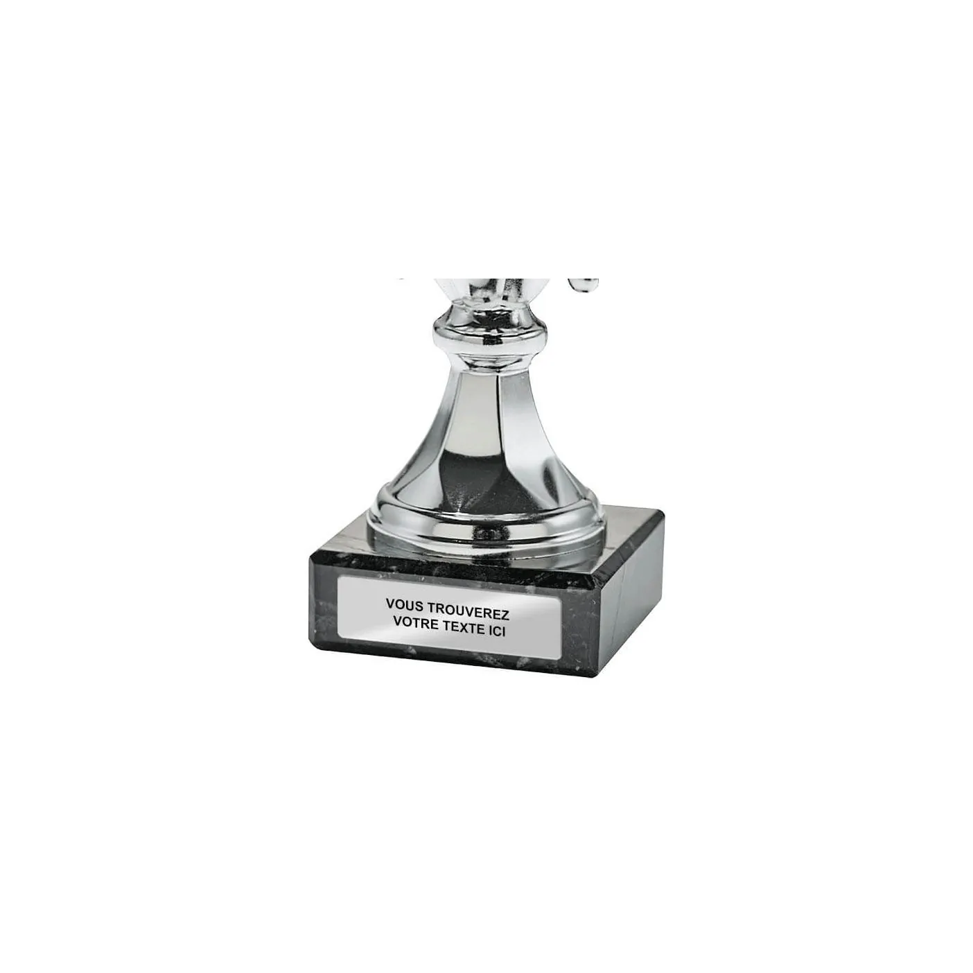 Cette coupe argentée Super Budget est disponible en stock chez Budgettrophy. La coupe mesure 13,5 cm de hauteur et convient très bien à tous les tournois (sportifs) ou à tous les petits gagnants lors d’une journée sportive ou d’un événement sportif. Vous pouvez personnaliser la coupe en ajoutant votre propre image au milieu ou en choisissant une pastille personnalisable parmi la vaste gamme de Budgettrophy. Vous pouvez également ajouter une plaque où vous pouvez faire graver votre propre texte. Budgettrophy attache gratuitement la plaque gravée!