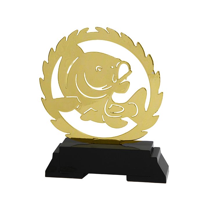 Ce trophée représentant un poisson a été spécialement créé pour la pêche. L’image de poisson qui orne le trophée montre clairement à quelle discipline le prix est destiné. Le trophée doré repose sur un pied noir. Une plaquette portant un texte personnel peut être placée sur le pied du trophée. La plaquette peut être gratuitement apposée pour vous par Budgettrophy.