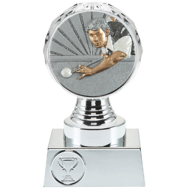 Ce trophée est disponible chez Budgettrophy en 3 tailles différentes en stock. Le trophée est argenté de couleur et monté dessus est un disque billard. En bas du trophée il y a de la place pour une image (sportive) et une plaque gravée de votre propre texte. Budgettrophy vous offre le montage de l’image (sportive) et de la plaque gravée gratuitement!