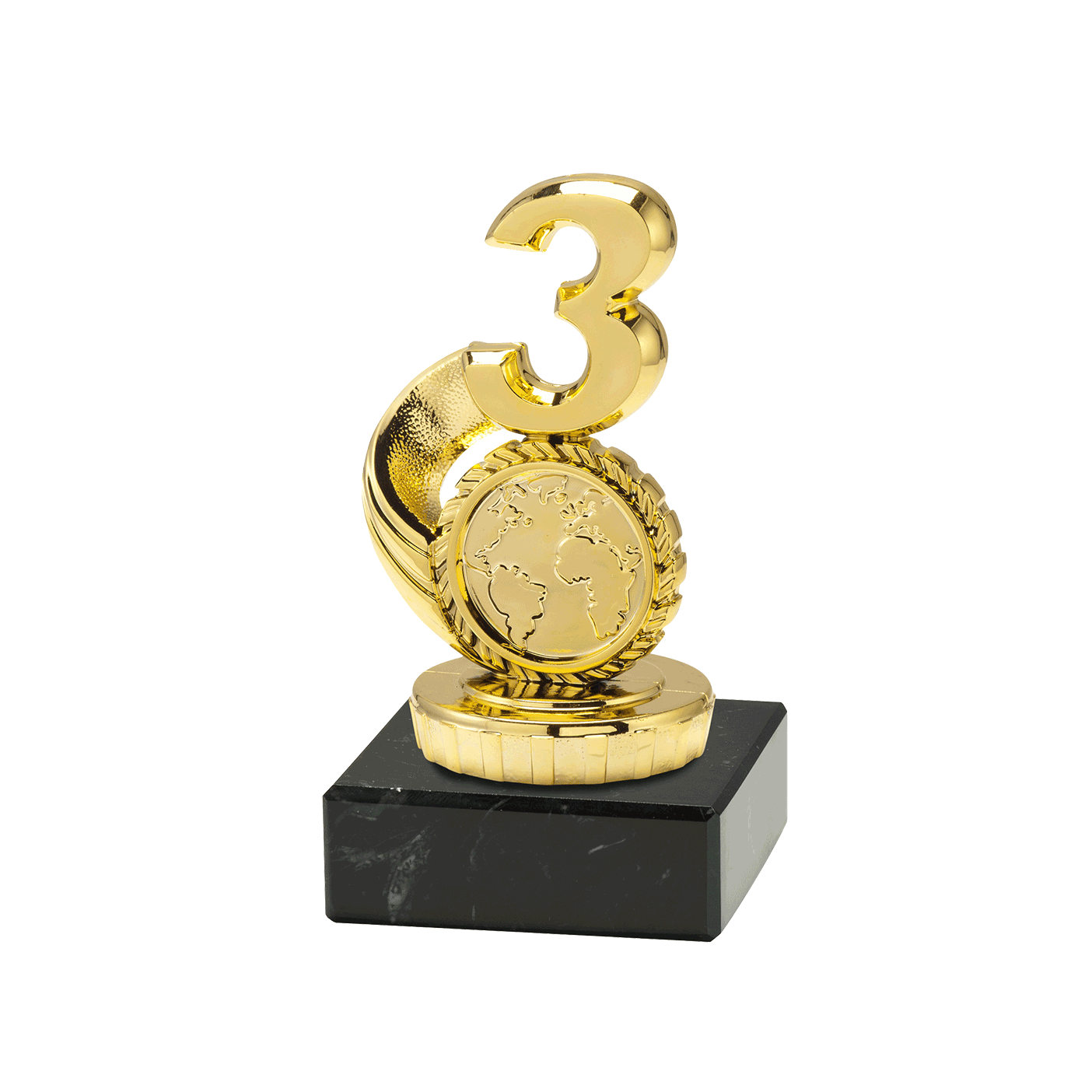Ce trophée amusant est disponible sur stock chez Budgettrophy. Le n ° 3 est monté sur un bloc de marbre et permet d'ajouter une pastille à gravure personnalisable. Vous pouvez télécharger votre propre image ou choisir une pastille dans la gamme de Budgettrophy. Sur le socle en marbre, vous pouvez ajouter une plaque à graver avec votre propre texte. Budgettrophy assemble l’image et la plaque gravée pour vous gratuitement!
