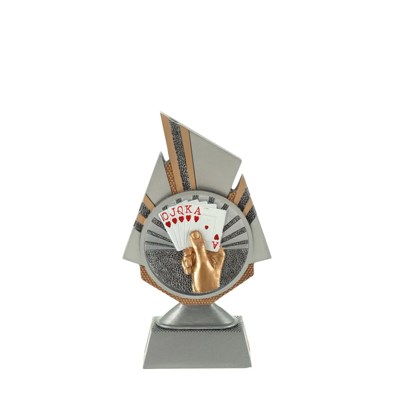 Ce trophée est disponible sur stock chez Budgettrophy en 3 tailles différentes. Il s’agit d’une belle résine dans laquelle est fixé un disque de cartes. Il y a de la place en bas du trophée pour apposer un texte personnalisé. Le montage de ce trophée est gratuitement exécuté par Budgettrophy.