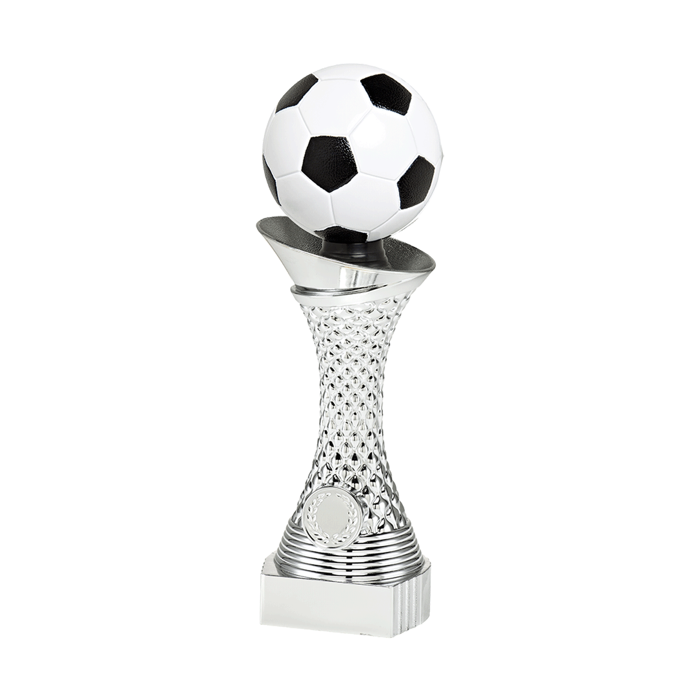 Ce trophée argenté Football est disponible en stock chez Budgettrophy dans 3 tailles différentes. Tout le trophée est argenté, avec un ballon de football noir-blanc. Vous pouvez personnaliser votre trophée en ajoutant une pastilleau centre en bas du trophée. Sur le pied vous pouvez également ajouter une plaque gravée avec votre propre texte. Budgettrophy vous offre l’assemblage de la pastille et de la plaque gravée gratuitement !