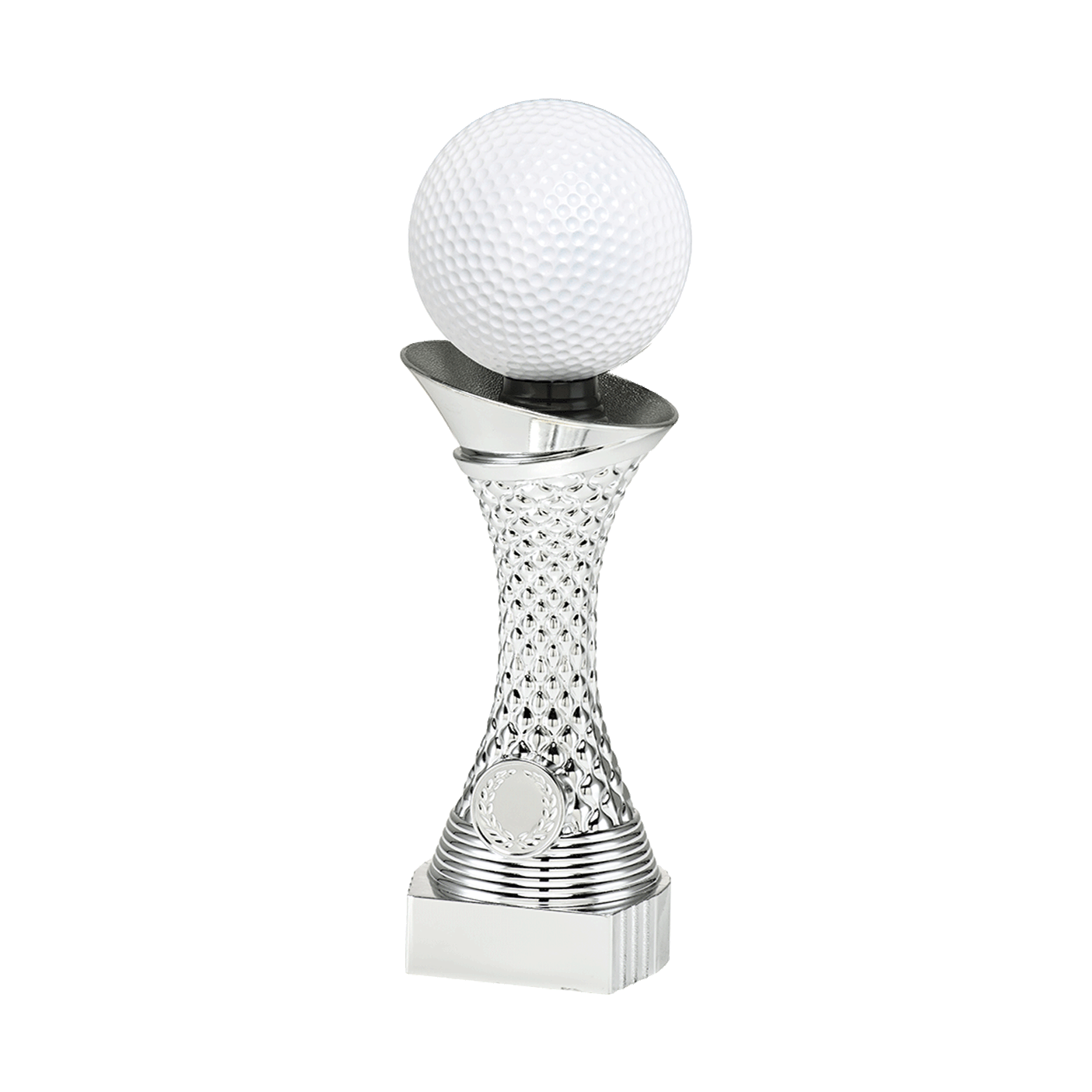 Ce trophée argenté Golf est disponible en stock chez Budgettrophy dans 3 tailles différentes. Tout le trophée est argenté, avec une balle de golf blanche. Vous pouvez personnaliser votre trophée en ajoutant une pastille au centre en bas du trophée. Sur le pied vous pouvez également ajouter une plaque gravée avec votre propre texte. Budgettrophy vous offre l’assemblage de la pastille et de la plaque gravée gratuitement !