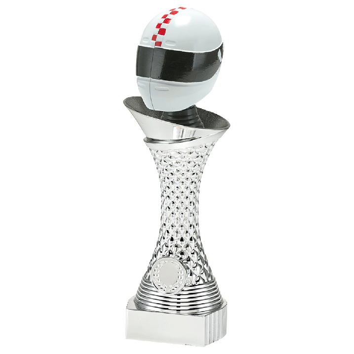 Ce trophée argenté Motocross est disponible en stock chez Budgettrophy dans 3 tailles différentes. Tout le trophée est argenté, avec un casque de moto blanc/noir/rouge. Vous pouvez personnaliser votre trophée en ajoutant une pastille au centre en bas du trophée. Sur le pied vous pouvez également ajouter une plaque gravée avec votre propre texte. Budgettrophy vous offre l’assemblage de la pastille et de la plaque gravée gratuitement !