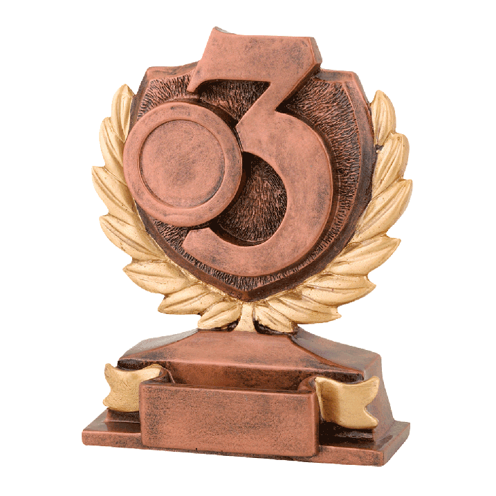 Ce trophée résine bronze-antique pour le No 3 est disponible en stock chez Budgettrophy. Vous pouvez personnaliser le trophée en ajoutant une pastille au centre à côté du "3". Budgettrophy propose une large gamme d’images (sportives). Sur le pied du trophée vous pouvez également ajouter une plaque gravée avec votre propre texte. Budgettrophy attache la pastille et la plaque gravée gratuitement pour vous !