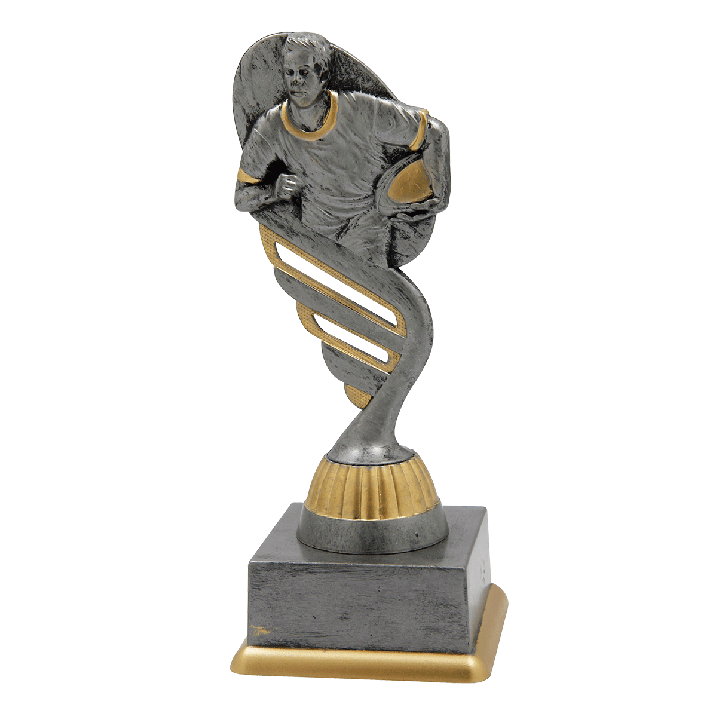 Ce trophée en argent antique avec des détails dorés est disponible en 3 tailles différentes (16 cm, 17,5 cm et 19 cm). Le trophée montre un joueur de rugby avec un ballon de rugby.Sur la base vous pouvez ajouter une plaque à gravure avec votre propre texte. Budgettrophy attache gratuitement la pastille et la plaque à gravure pour vous.