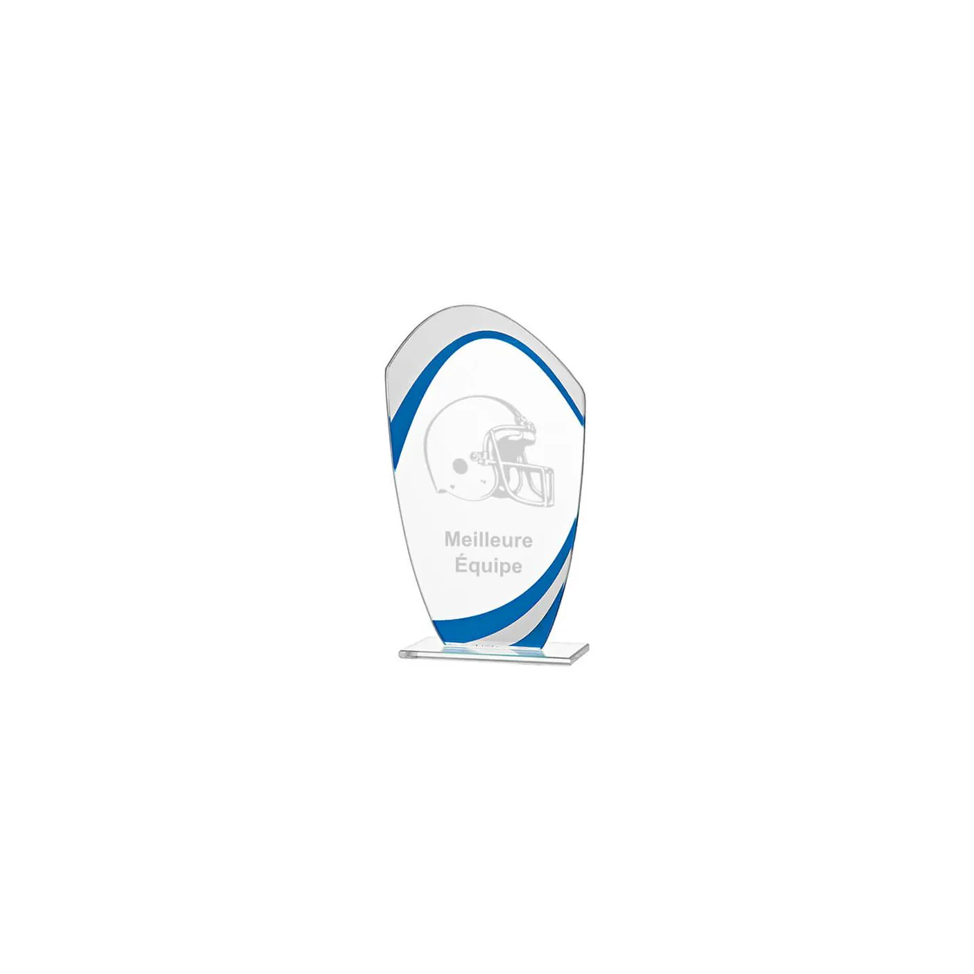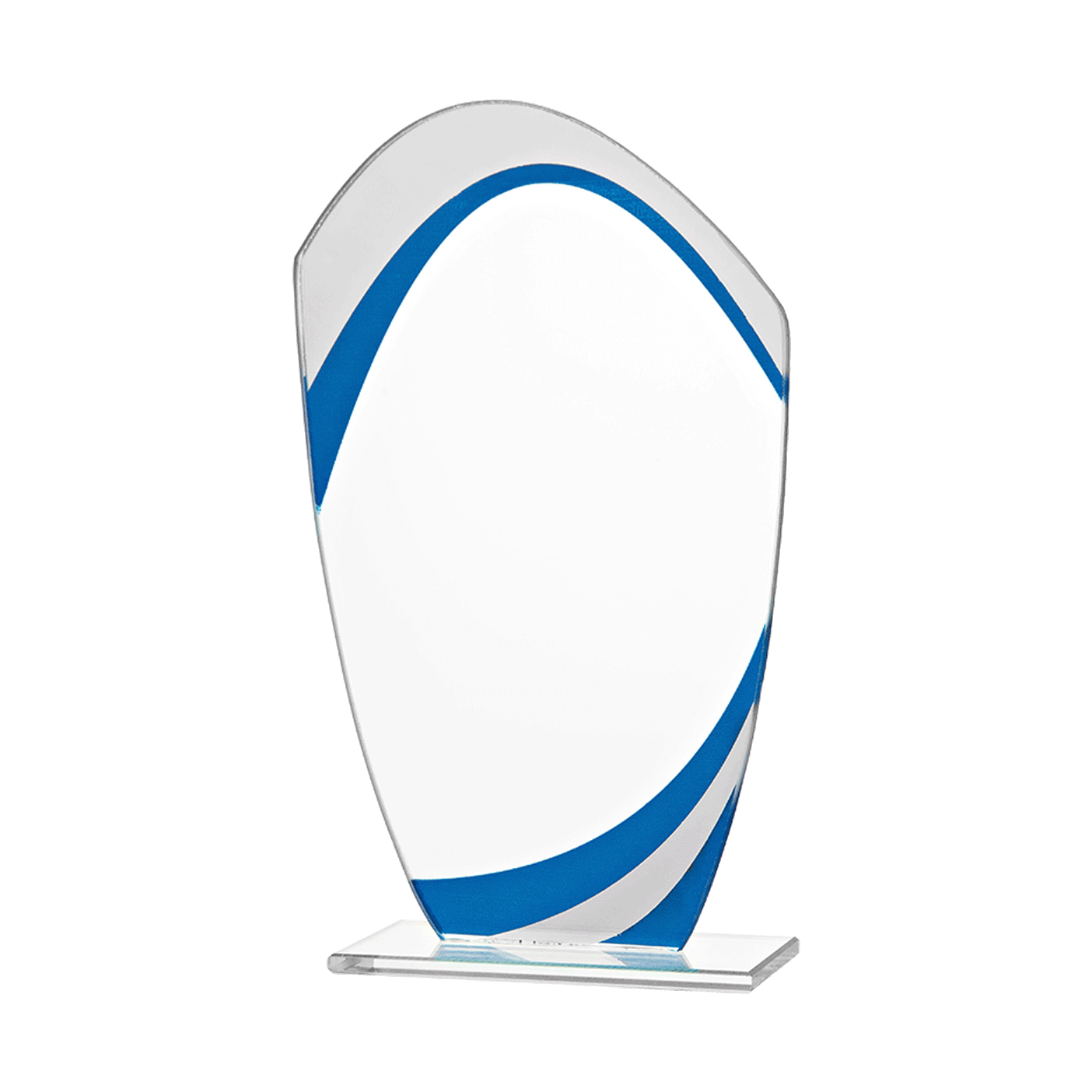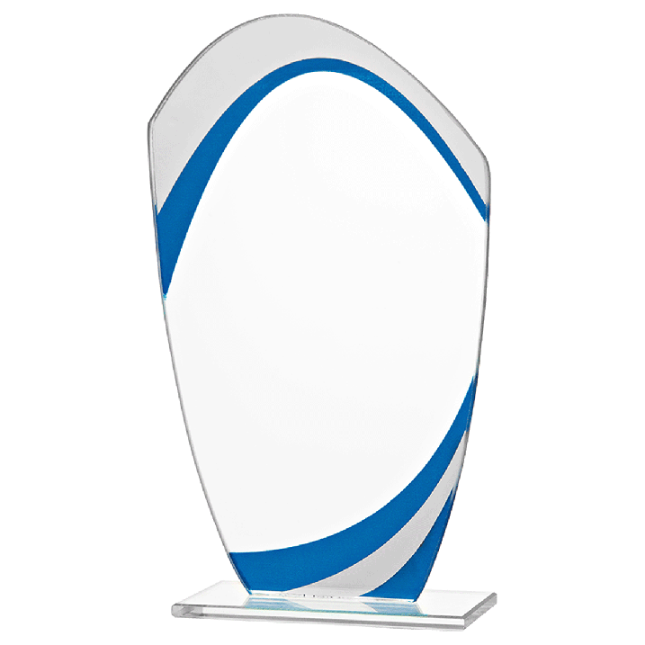 Ce trophée en verre élégant est disponible chez Budgettrophy en 3 tailles différentes. Le verre a des détails bleu foncé. Vous pouvez faire décorer le verre au laser à votre convenance, avec votre propre logo, image ou texte. Vous pouvez également télécharger votre image. Budgettrophy vous contactera ensuite pour approuver le produit final.