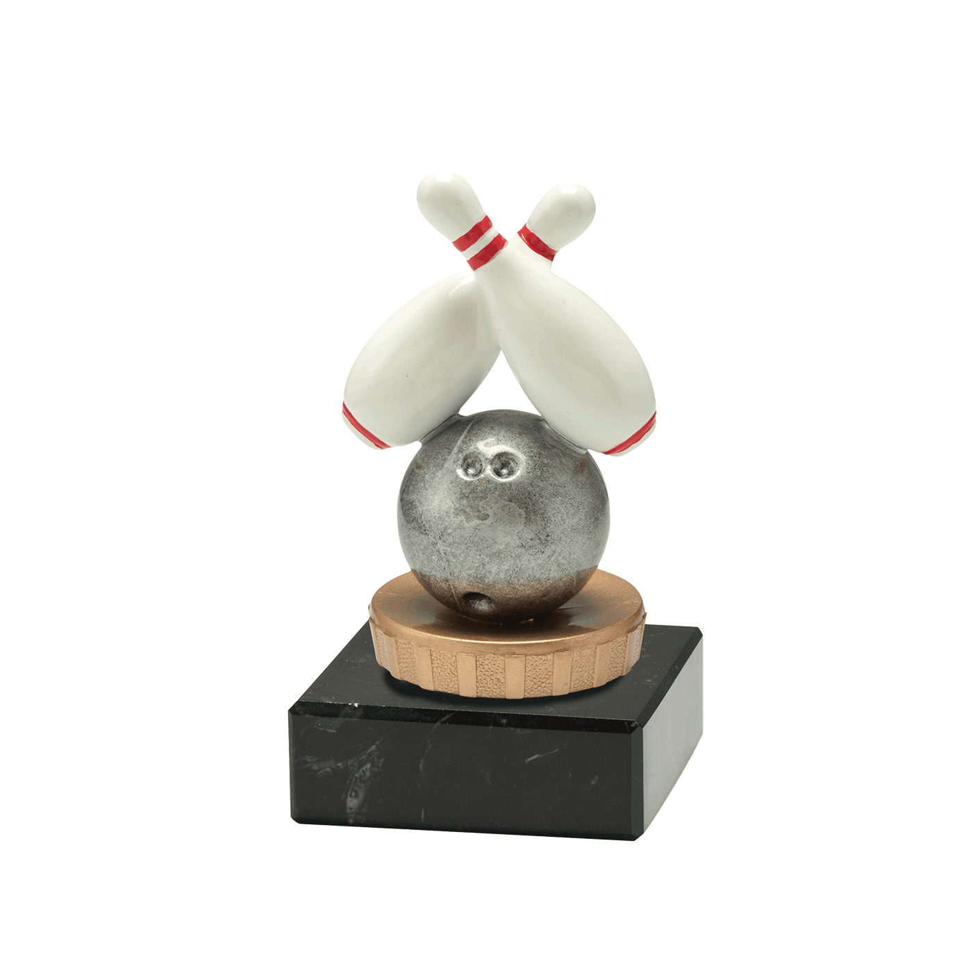 Ce trophée de bowling est disponible en stock chez Budgettrophy. Le trophée en argent antique, orné de détails dorés, convient à tous les tournois ou événements de bowling. Vous pouvez ajouter une plaque gravée de votre propre texte sur le pied de marbre. Budgettrophy vous offre le montage de la plaque gravée gratuitement !