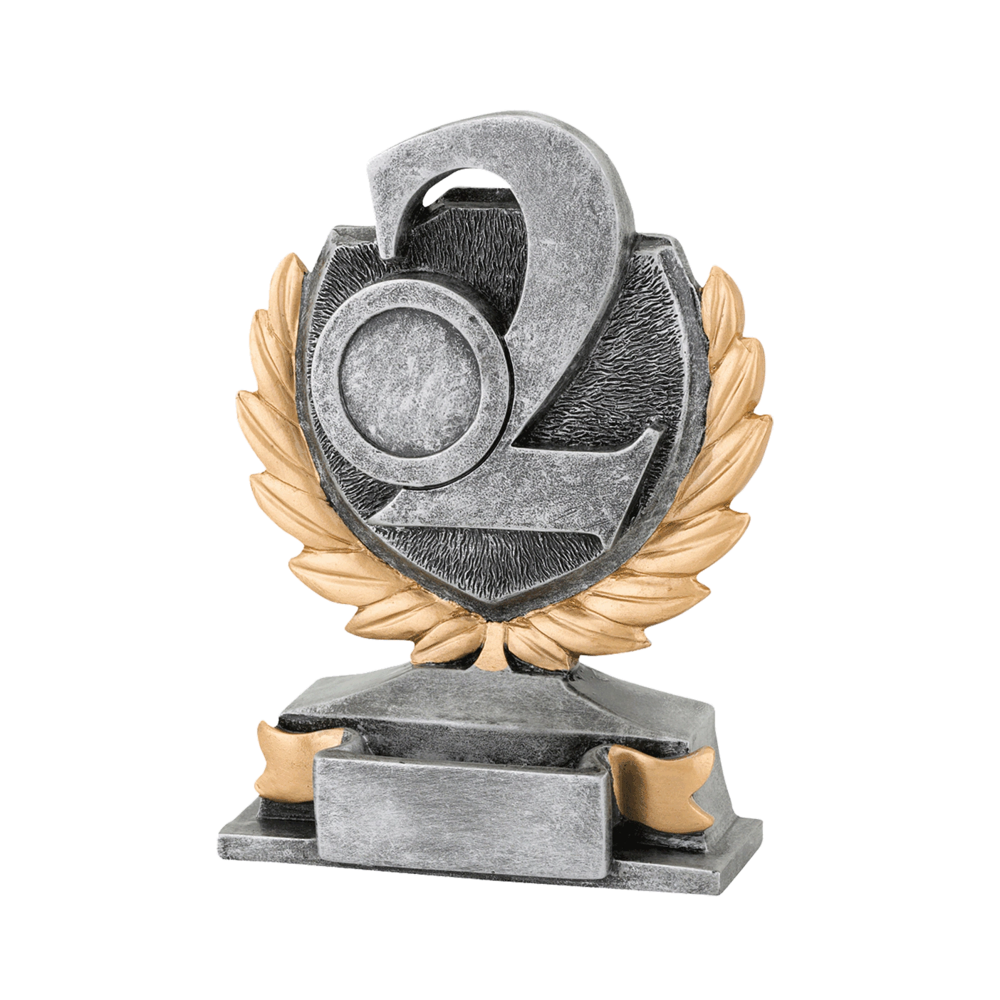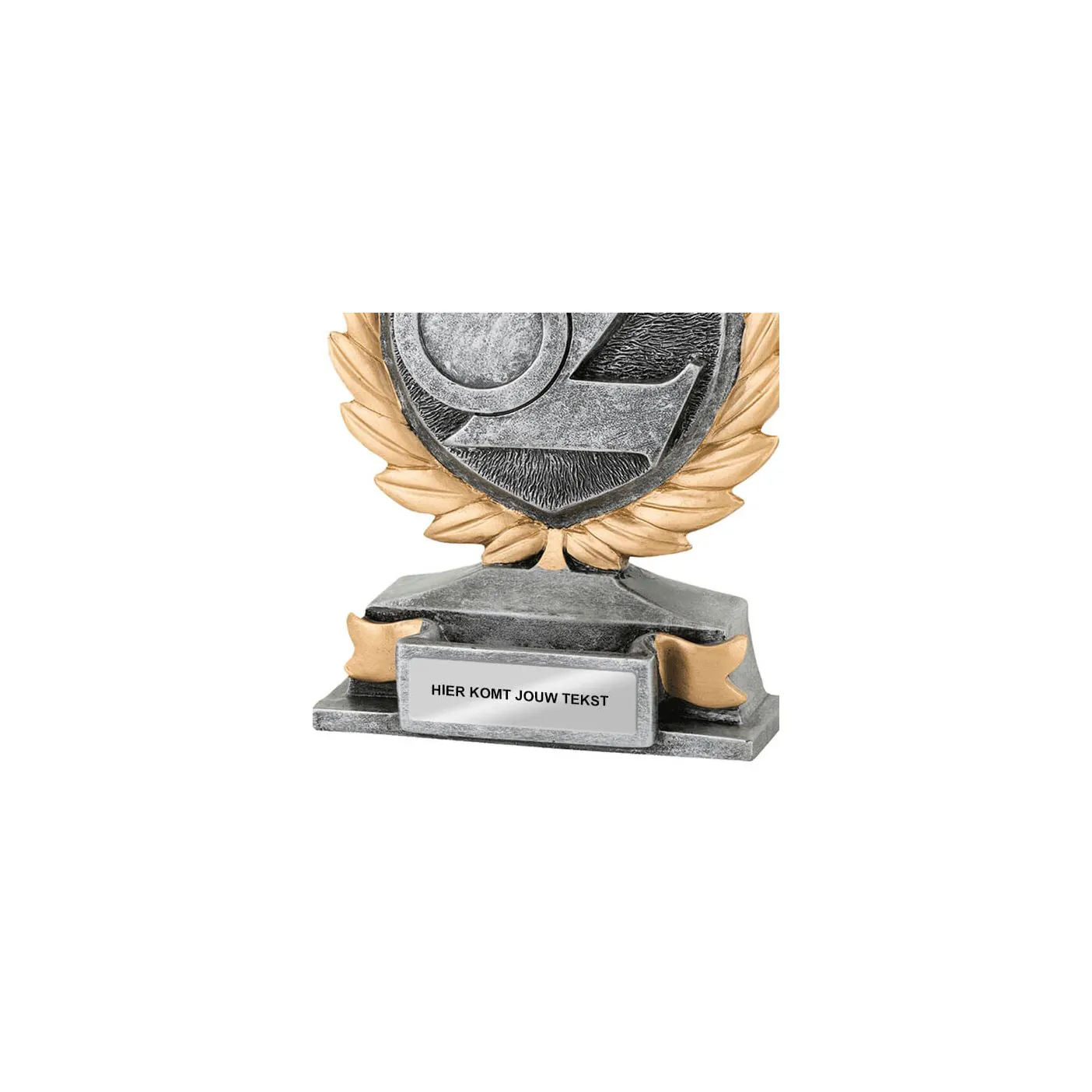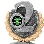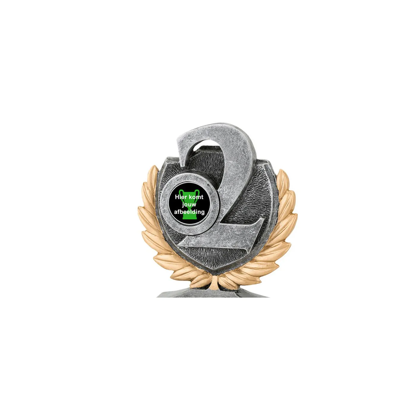 Deze trofee voor de nr.2 is oud zilver met gouden details en heeft Budgettrophy direct beschikbaar uit voorraad. De trofee kunt u sport specifiek maken door een (sport)afbeelding naast de “2” toe te voegen. Budgettrophy heeft een ruim assortiment aan (sport)afbeeldingen waar u uit kunt kiezen. Op de voet van de trofee kunt u daarnaast een graveerplaatje laten toevoegen met uw eigen tekst. Budgettrophy monteert de afbeelding en het graveerplaatje gratis voor u!