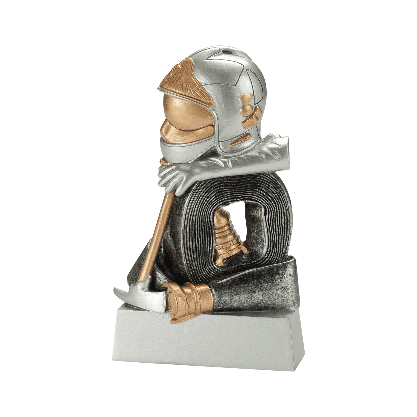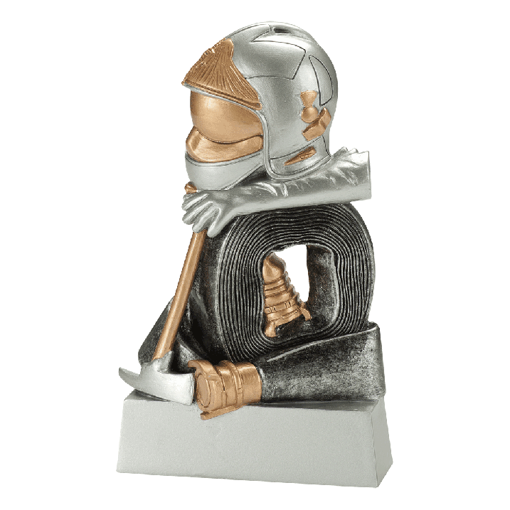 Deze zilveren resin standaard met gouden details speciaal voor de brandweer heeft Budgettrophy direct beschikbaar uit voorraad in 3 verschillende maten. De trofee is voorzien van een brandweerslang, brandweerhelm, handschoenen en een pikhouweel. De voet van de trofee kan daarnaast voorzien worden van een grafeerplaatje met uw eigen tekst. Budgettrophy monteert zowel de afbeelding als het graveerplaatje gratis voor u!