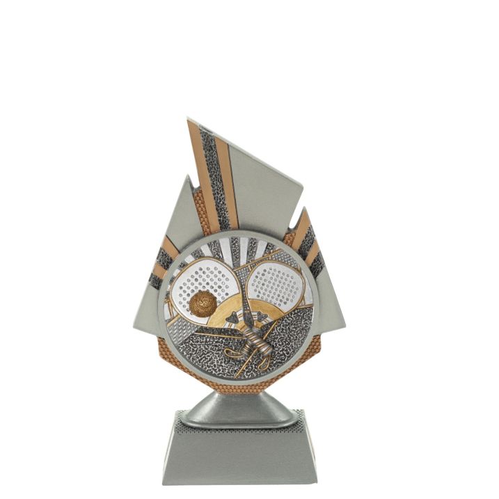 Deze trofee heeft Budgettrophy in 3 maten op voorraad. Het is een mooie resin houder, waar een padel disc in bevestigd is. Onderaan de trofee is er plek voor een tekstplaatje waar je een eigen tekst op kan laten zetten. De montage van deze trofee wordt gratis uitgevoerd door Budgettrophy.