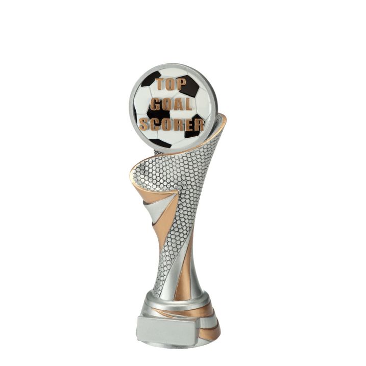 Deze mooie, staande, trofee is beschikbaar in 3 verschillende maten. Het is een zilveren trofee met gouden details en bovenin zit een mooie voetbal disc bevestigd. Op de onderkant van de trofee is ruimte voor een tekstplaatje met een eigen tekst. De montage van dit tekstplaatje wordt gratis gedaan door Budgettrophy!