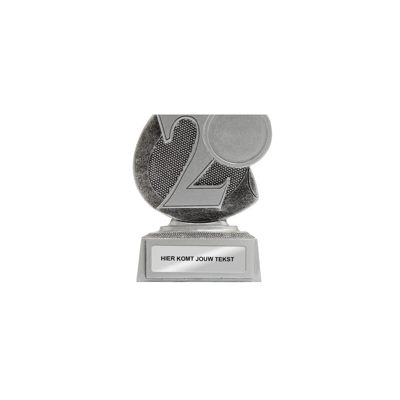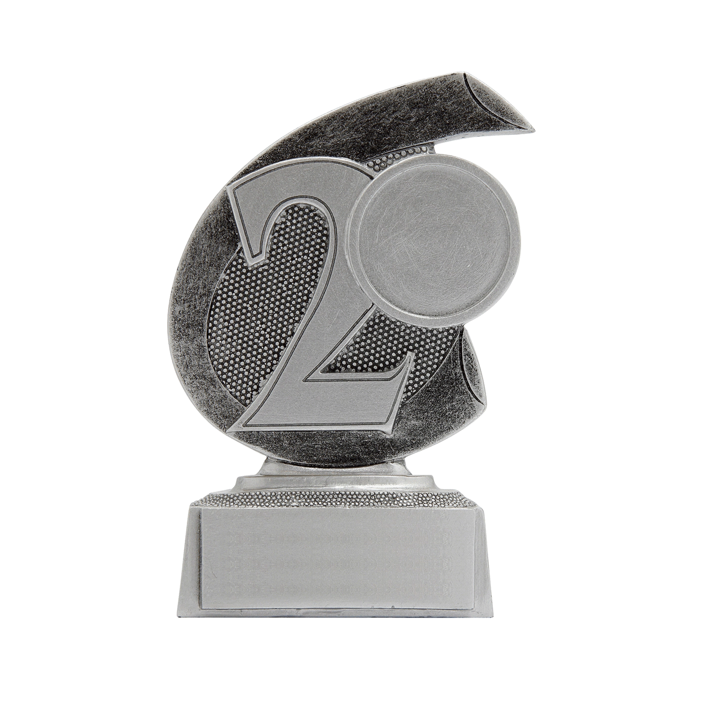 Deze resin voor de nr.2 is oud zilver en heeft Budgettrophy direct beschikbaar uit voorraad. De trofee kunt u sport specifiek maken door een (sport)afbeelding naast de “2” toe te voegen. Budgettrophy heeft een ruim assortiment aan (sport)afbeeldingen waar u uit kunt kiezen. Op de voet van de trofee kunt u daarnaast een graveerplaatje laten toevoegen met uw eigen tekst. Budgettrophy monteert de afbeelding en het graveerplaatje gratis voor u!