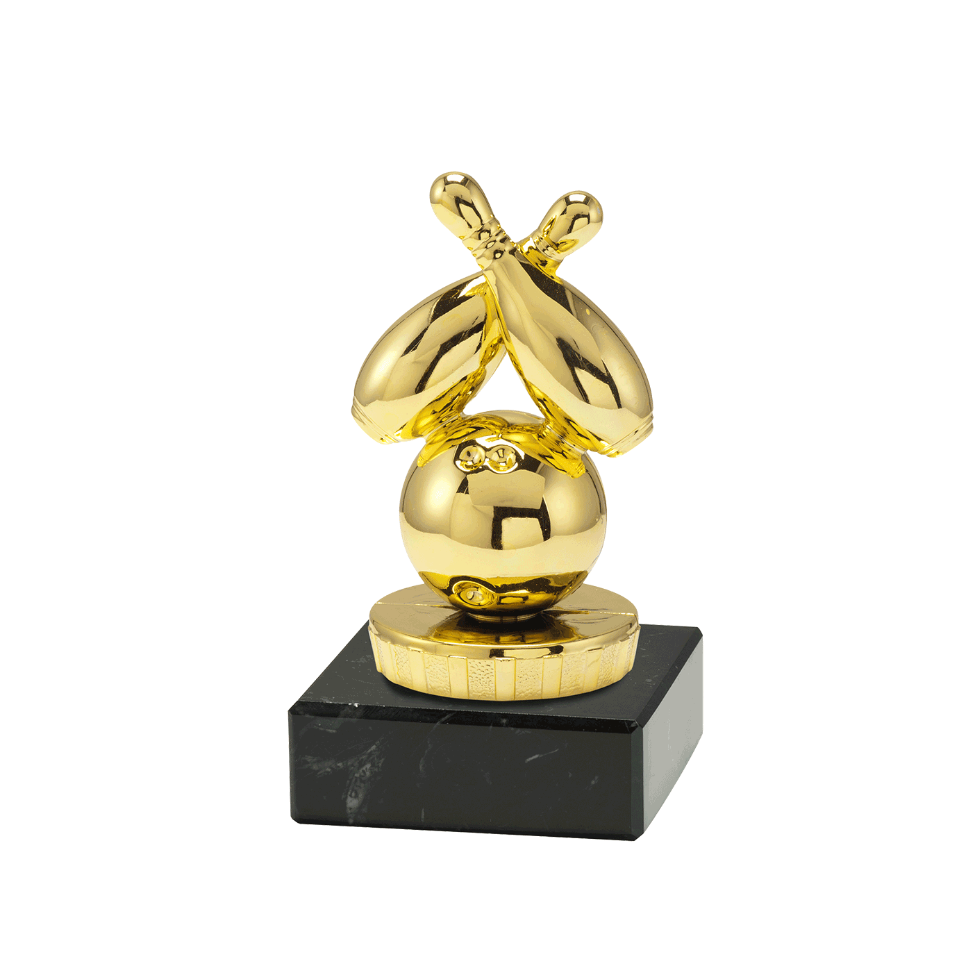 Deze bowling trofee, heeft Budgettrophy direct uit voorraad leverbaar. De gouden trofee is geschikt voor ieder bowlingtoernooi of evenement. U kunt op het marmeren blok een graveerplaatje met uw eigen tekst toe laten voegen. Budgettrophy monteert het graveerplaatje gratis voor u!