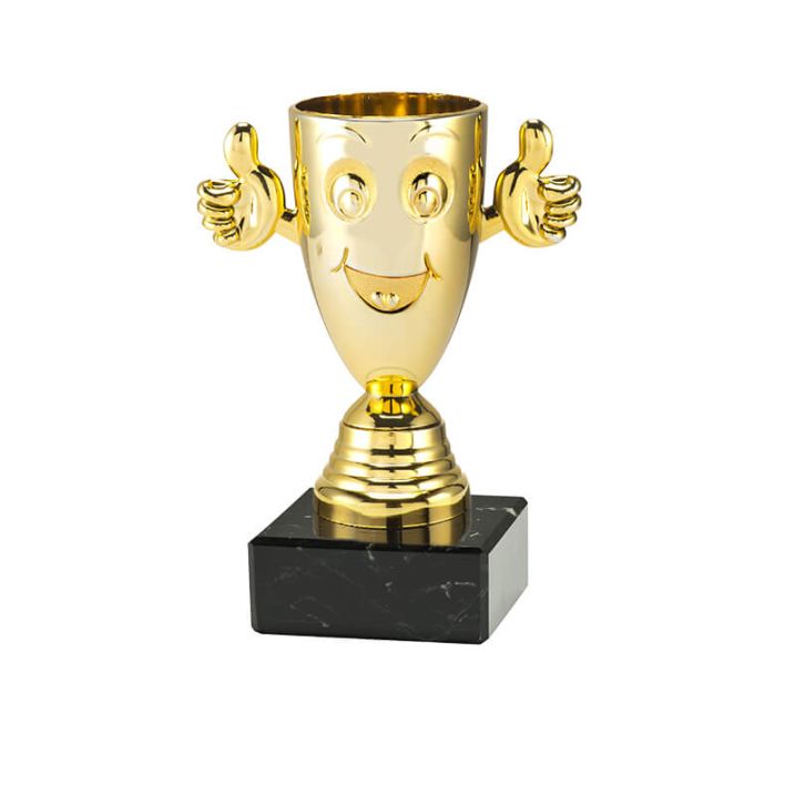 Deze mooie dikke duimtrofee op marmer is super leuk om uit te reiken aan kinderen. De trofee in de kleur goud kan je gebruiken voor iedereen die iets goed heeft gedaan. Door een tekst toe te voegen stem je de trofee helemaal of op jouw wensen.