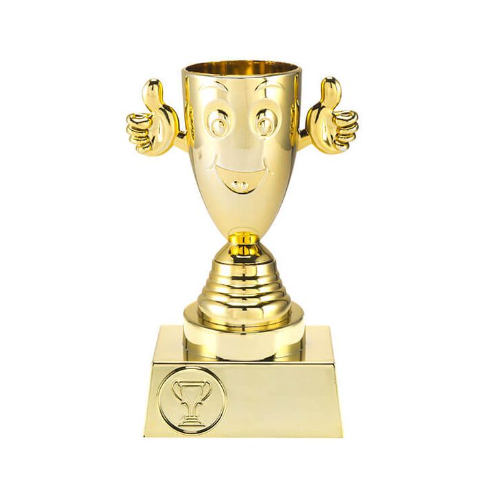 Deze mooie duimtrofee in 3D staat mooi in iedere prijzenkast. De trofee in de kleur goud kan je gebruiken voor iedereen die iets goed heeft gedaan. Door een tekst toe te voegen stem je de trofee helemaal of op jouw wensen. Kies daarnaast uit meer dan 100 gratis (sport)afbeeldingen om op de voet van de duimtrofee te plaatsen. Liever een eigen ontwerp? Geen probleem! Upload dan zelf een afbeelding.