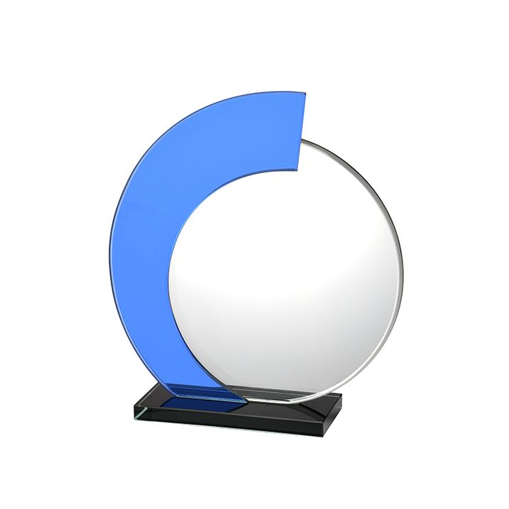 Deze bijzondere glazen trofee is verkrijgbaar in 3 verschillende maten bij Budgettrophy. De asymmetrische vorm en de blauwe rand geven de award een erg unieke uitstraling. Er zit een platte voet aan, zodat de glas award netjes zal blijven staan. De award kan naar eigen smaak worden gepersonaliseerd door het uploaden van je eigen ontwerp. Geef de tekst in die op de award komt en Budgettrophy maakt hier een mooie proefdruk van. Deze ontvang je in je mail binnen 24 uur na ontvangst van de order bevestiging. Wanneer hier akkoord op is gegeven zal de order in productie gaan.