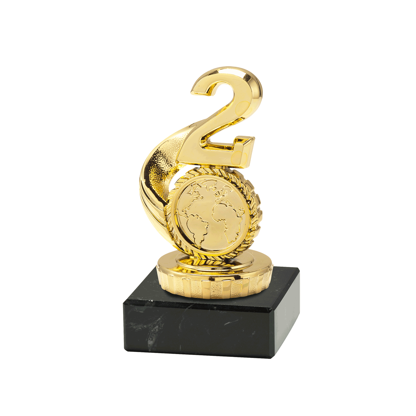 Deze leuke trofee heeft Budgettrophy direct uit voorraad leverbaar. De gouden nr. 2 is gemonteerd op een marmeren blok en geeft de mogelijkheid om een (sport)afbeelding toe te voegen. Je kunt hiervoor een eigen afbeelding uploaden of een afbeelding kiezen uit het ruimte assortiment afbeeldingen van Budgettrophy. Op de marmeren voet kun je een tekstplaatje met uw eigen tekst laten monteren. Budgettrophy monteert de afbeelding en het tekstplaatje gratis voor u! Wilt u een bokaal kopen? Ook dat kan bij Budgettrophy!