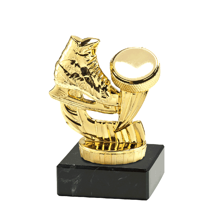 Deze gouden ijshockey trofee, heeft Budgettrophy direct uit voorraad leverbaar. De trofee is antiek zilver met goud en geschikt voor ieder ijshockey toernooi of evenement. U kunt op het marmeren blok een graveerplaatje met uw eigen tekst toe laten voegen. Budgettrophy monteert het graveerplaatje gratis voor u!