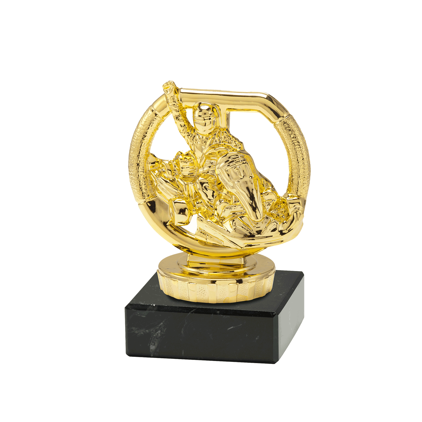 Deze karting trofee, heeft Budgettrophy direct uit voorraad leverbaar. De gouden trofee is geschikt voor ieder kart toernooi of evenement. U kunt op het marmeren blok een graveerplaatje met uw eigen tekst toe laten voegen. Budgettrophy monteert het graveerplaatje gratis voor u!
