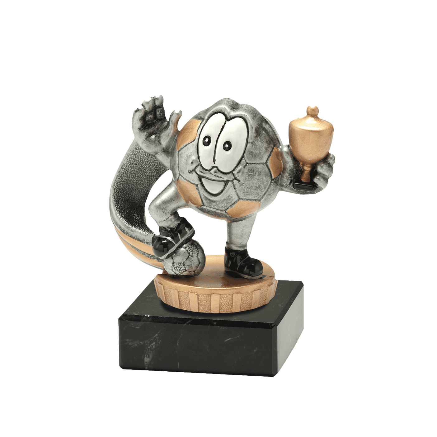 Deze vrolijke trofee heeft Budgettrophy direct uit voorraad leverbaar. De trofee is geschikt voor alle kleine winnaars of deelnemers. U kunt op het marmeren blok een graveerplaatje met uw eigen tekst toe laten voegen. Budgettrophy monteert het graveerplaatje gratis voor u!