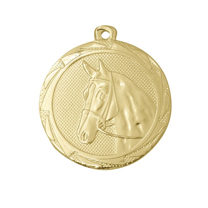 Deze paarden medaille is speciaal ontworpen voor ons paardensport prijzen assortiment. Op de medaille is een mooi paardenhoofd afgebeeld. Achterop de medaille kan een tekstlabel geplaatst worden met een eigen tekst, ook kan de kleur van het lint zelf gekozen worden zodat de medaille helemaal naar wens gemaakt kan worden. De montage wordt gratis uitgevoerd door Budgettrophy.